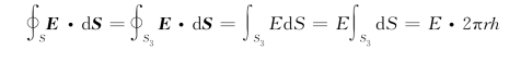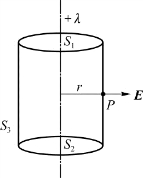 解 由题意知,这里的电场是关于直线轴对称的,E的方向垂直直线。在以直线为轴的任一圆柱面上的各点场强大小是等值的。以直线为轴线,过考察点P作半径为r、高为h的圆柱高斯面,上底为S 1,下底为S 2,侧面为S 3。