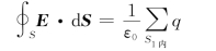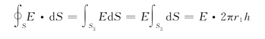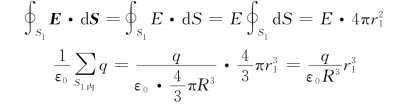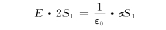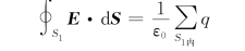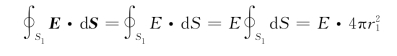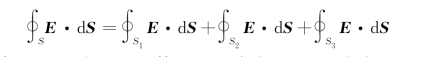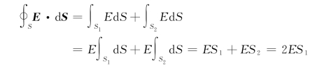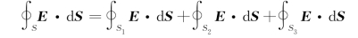 因为在S 3上的各面元d S⊥E,所以第三项积分为0。又因为在S 1、S 2上各面元d S与E同向,且在S 1、S 2上E的大小是常数,所以有