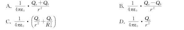 9.两个同心均匀带电球面,半径分别为Ra和R b(Ra<Rb),所带电量分别为Qa和Q b,设某点与球心相距r,当Ra<r<Rb时,该点的电场强度的大小为( )。