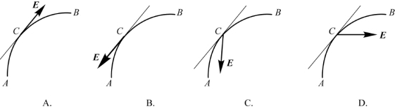 6.一个带正电荷的质点在电场力的作用下从A点经C点运动到B点,其运动轨迹如习题图5.4所示。已知质点运动的速率是递增的,下面关于C点电场强度方向的四个图示中正确的是( )。