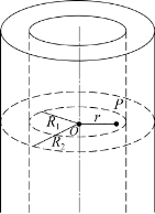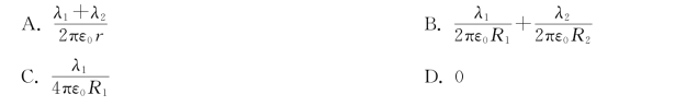 10.如习题图5.6所示,两个无限长、半径分别为R 1和R 2的共轴圆柱面均匀带电,轴线方向单位长度上的带电量分别为λ1和λ2,则在内圆柱面里面、距离轴线为r处的P点的电场强度大小( )。