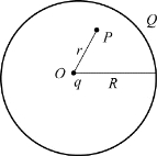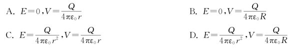 5.如习题图5.3所示,有一半径为R的均匀带电球面,其所带的总电荷量为Q,设无穷远处的电势为零,则距离球心为r(r≤R)的点P处电场强度的大小和电势为( )。