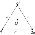 9.如习题图5.15所示为一边长均为a的等边三角形,其三个顶点分别放置电量为q、2q、3q的三个正点电荷。若将一电量为Q的正点电荷从无穷远处移至三角形的中心O处,则外力需做功A=_________。