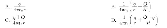 13.真空中一半径为R的球面均匀带电Q,在球心O处有一带电量为q的点电荷,如习题图5.8所示,设无穷远处为电势零点,则在球内离球心O距离为r的P点处的电势为( )。