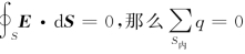 如图6.4所示,导体电荷为Q,在其内作一闭合曲面S,根据高斯定理,有由于导体静电平衡时其内E=0,所以。