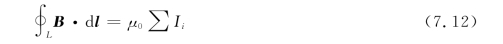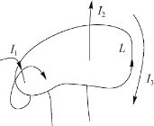 需要说明的是,闭合路径L“包围”的电流,指的是与L相铰链的电流。若闭合回路与数匝电流铰链,如图7.14所示,I 1有两匝电流与回路L铰链,则计算被包围电流时应被看成2I 1。