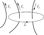 电流I正负的规定:I与L成右手螺旋关系时,I为正;反之为负。如图7.13所示,由三根载流导线与回路l关系有