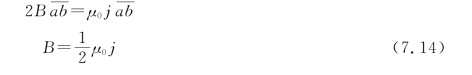 式(7.14)表明,无限大均匀载流平面两侧的磁场大小相等,方向相反,并且是均匀磁场。