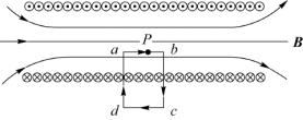 上述计算与矩形回路的ab边在管内的位置无关,表明无限长载流直螺线管内的磁场是均匀磁场(此结果与使用叠加原理得到的结果是一致的)。