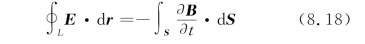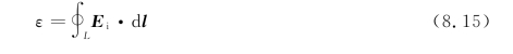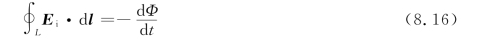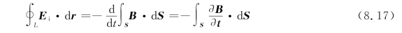 在一般情况下,空间的电场可能既有静电场E s,又有感生电场E i。根据叠加原理,总电场E沿某一封闭路径L的环路积分应是静电场的环路积分和感生电场的环路积分之和。由于前者为零,所以E的环路积分就等于E i的环流。因此,利用式(8.17)可得