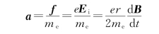 在图8.11(a)中,电子轨道运动的磁矩方向向下。设所加磁场B的方向向上,在该磁场由0增大到B的过程中,在该区域将产生感生电场E i,其大小为(参看例8.2),方向如图8.11所示。在此电场作用下,电子将沿轨道加速,加速度为