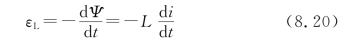 在图8.12中,回路的正方向一般取电流i的方向。当电流增大,即>0时,由式(8.20)知εL<0,说明εL的方向与电流的方向相反;当