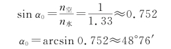 即当光从玻璃入射到水中发生全反射的临界角约为48°76′。