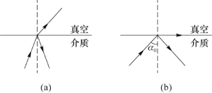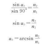 根据临界角的定义,可以求出光从折射率为n 1的光密介质进入折射率为n 2的光疏介质时的临界角。设入射角为α0时,折射角为90°,如图9.7(b)所示,根据式(9.2),有