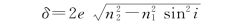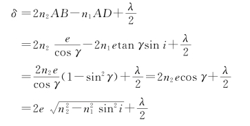 其中,这一项是由于光线2是光线1在由光疏介质射向光密介质而在界面反射形成的半波损失项。设薄膜厚度为e,γ为折射角,由图中可以看出
