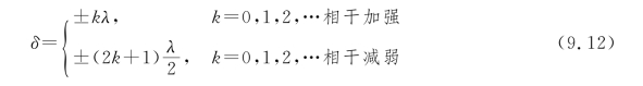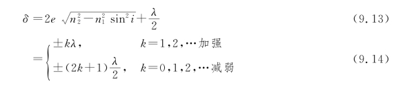 注意,式(9.13)是由n 1<n 2>n 3得到的,对于n 1>n 2<n 3也可得到相同的结果,但若n 1<n 2<n 3,由于半波损失在两个界面上都产生,结果是