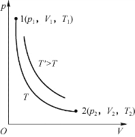 例如,以p为纵轴,V为横轴的p-V图上的每一点给出一组确定的p、V值,因此p-V图上的每一点都表示一个平衡态。同理,也可作出T-V图等。这些图中的每一点也都表示一个平衡态。图10.2是常见的p-V图。