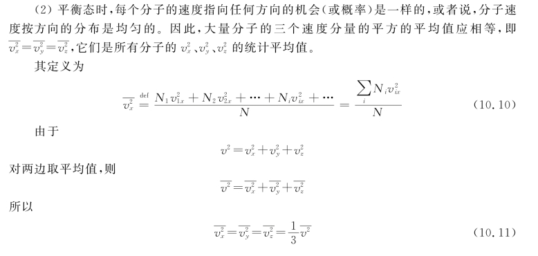 (1)平衡态时,若忽略重力的影响,每个分子处于容器内任何一点的机会(或概率)是一样的,或者说,分子按位置的分布是均匀的。例如,以N表示容器体积V内的分子总数,则分子数密度应到处一样,并且有