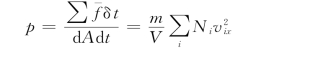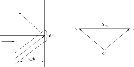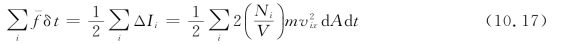 把式(10.16)对具有各种可能速度分量v ix的分子求和,就得到全体分子作用在右壁d A上的总的动量变化,它应等于全体分子作用在d A上的总冲量。