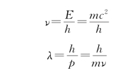 1924年,法国博士研究生德布罗意在光的波粒二象性的启发下想到,自然界在许多方面都具有明显地对称性,如果光具有波粒二象性,则实物粒子,如电子,也应该具有波粒二象性。于是,他大胆地在他的博士论文中提出假设:实物粒子也具有波动性。他把光子的能量-频率和动量-波长的关系式借鉴来,提出一个粒子的能量E和动量p跟与它相联系的波的频率ν和波长λ的定量关系与光子的一样,即