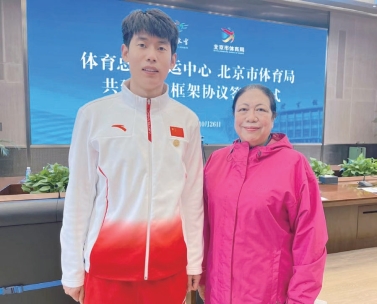 作者与北京冬奥会钢架雪车铜牌得主闫文港