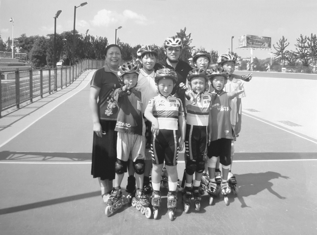 作者采访少年轮滑队员