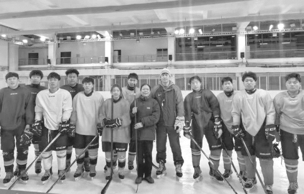 作者采访哈尔滨冰球运动员