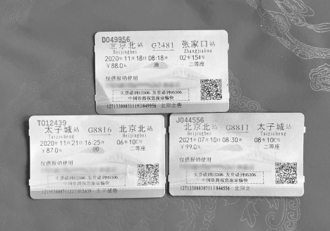 作者乘坐的北京至张家口和太子城的高铁列车票