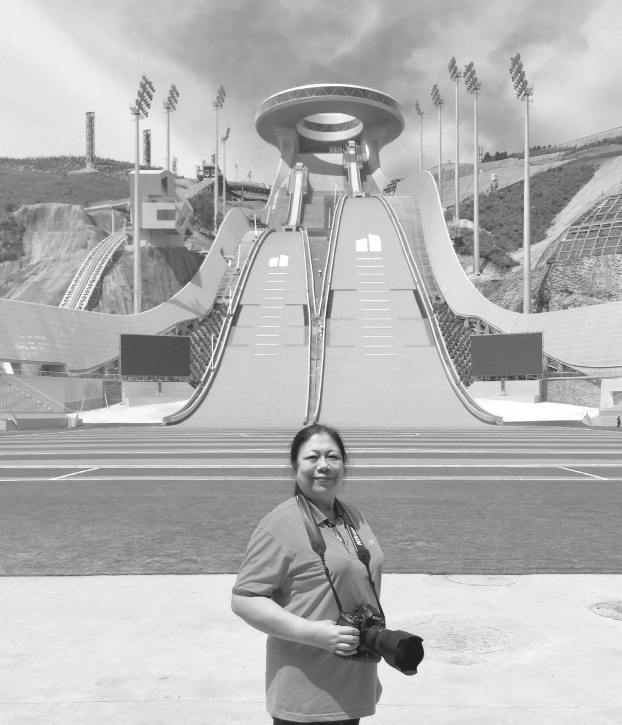 作者在竣工的张家口赛区“雪如意”前采访