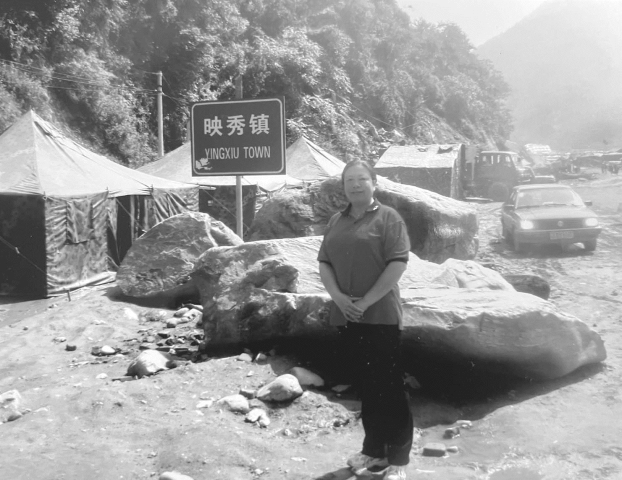 汽车在弯弯曲曲的山路上颠簸着,路面裂开了大口子,有的地方一半的路都坍塌了,只能够一辆车前进。中午时分,我们终于来到了谢家店子。大家开始卸货了。地震把房子震倒了,从汽车到空地要上一个土坡,土被震松了,踩上去直打趔趄。我说:“咱们站好队传吧,这样就不用来回上坡了。”