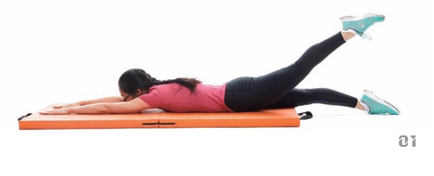 动作轨迹:①举单腿:臀部发力,一侧腿正直向上抬起,不要左右摆动,抬至最高点时,臀部肌肉做顶峰收缩,微停顿半秒;控制下放,还原至起始位置。动作全程快起慢放。训练中,一侧腿做完一组,再开始另一侧,不要每侧一下交替进行。