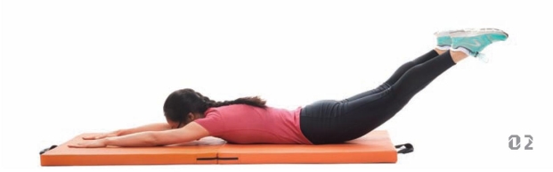 起始姿态:身体正直俯卧于垫上,双手双腿自然伸直,与肩同宽。