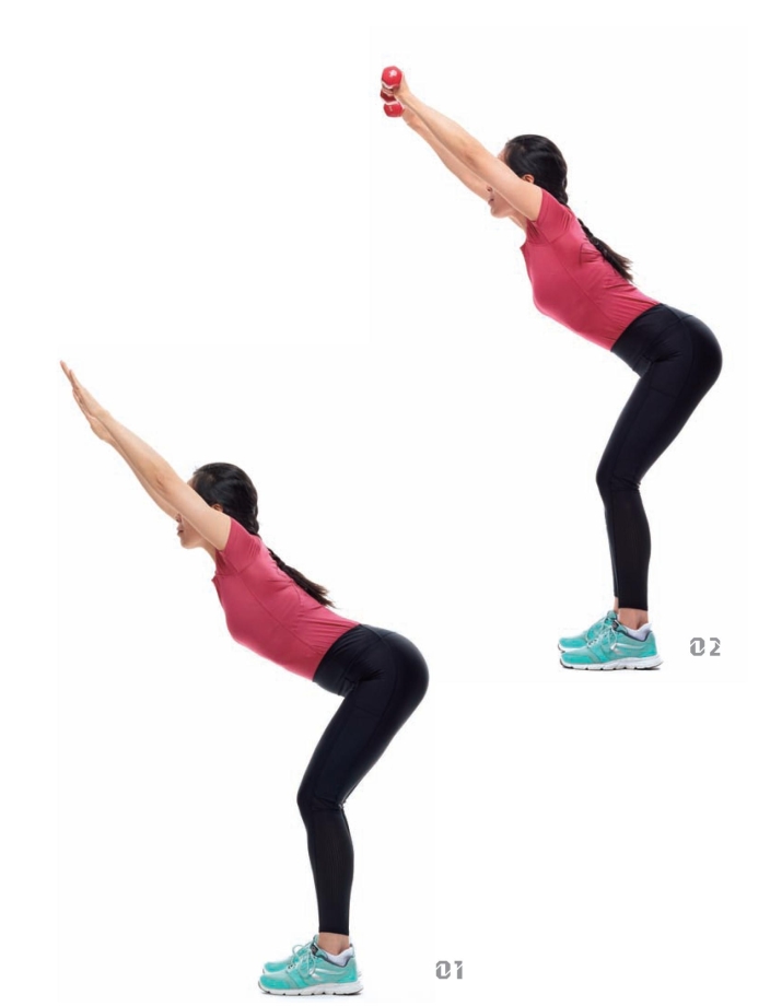 特别提醒 可根据自身能力选择徒手或持推小哑铃。