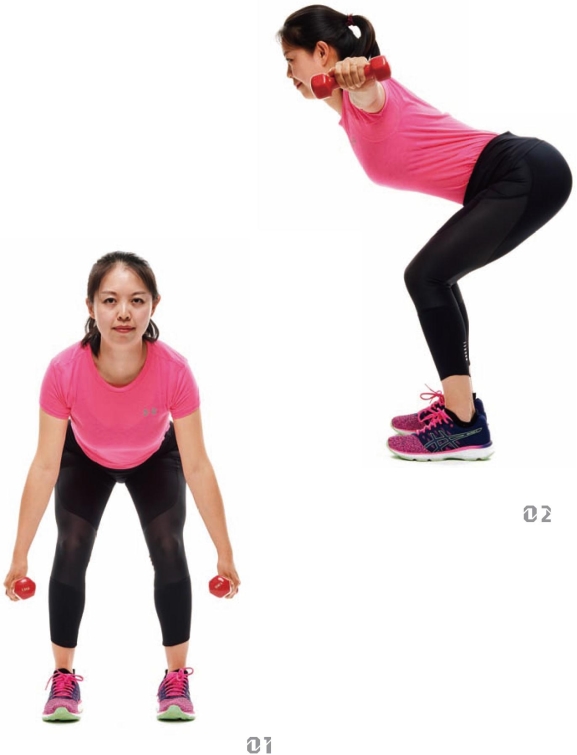 这个动作可以徒手完成,也可以双手持握哑铃(或矿泉水瓶等)完成。