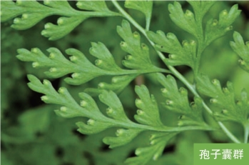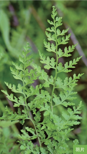 形态特征:多年生草本,高25~55厘米。根状茎细长,横走,黑色,疏被棕色节状长毛。叶二列疏生或近生;叶柄基部栗黑色,向上为红棕色或淡禾秆色;叶片长圆状披针形,长16~30厘米,宽2.5~8厘米,二至三回羽状深裂;羽片12~14对,互生;一回小羽片长圆状卵形,羽状深裂或为粗锯齿状;叶薄草质,通体光滑无毛。孢子囊群近圆形,生于裂片齿凹处或前端;囊群盖浅杯形,淡绿色,口边稍呈虫蚀状。孢子成熟期7—8月。
