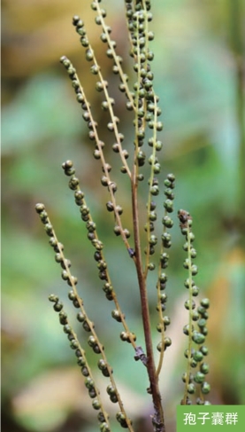 形态特征:多年生草本,高30~70厘米。根状茎长而横走,黑褐色,疏被棕色鳞片。叶疏生,二型;营养叶叶柄长20~50厘米,疏被棕色鳞片,叶片宽卵状三角形或宽卵形,长、宽近相等,长13~30厘米,宽12~22厘米,顶端羽状半裂,向下为一回羽状,羽片5~8对,边缘波状浅裂;叶草质;孢子叶短于营养叶,叶柄长18~45厘米,二回羽状,羽片狭线形,小羽片紧缩成小球形,包被孢子囊群,彼此分离,排列于羽轴两侧;孢子囊群圆形,着生于由小脉顶端形成的囊托上;囊群盖膜质,紧包着孢子囊群。孢子成熟期8—10月。