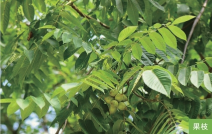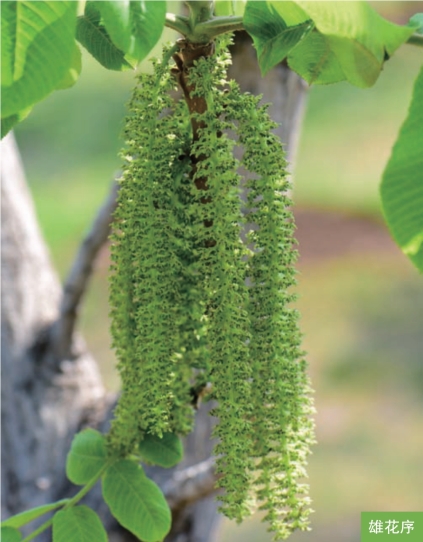 形态特征:落叶乔木,高达20余米。树皮灰色,浅纵裂。枝条扩展,树冠扁圆形。幼枝被有短绒毛。奇数羽状复叶互生;叶片长40~60厘米,生于萌发枝上的长可达80厘米;小叶15~23枚,长6~17厘米,宽2~7厘米,长圆形或卵状长圆形。雄性葇荑花序长9~30厘米,雌性穗状花序具4~10雌花;雌花花被片4枚,柱头鲜红色。核果球状、卵状或椭圆状;果核表面具8条纵棱,其中两条较显著,各棱间具不规则皱曲及凹穴。花期5月,果期8—9月。