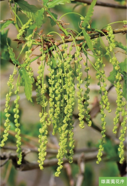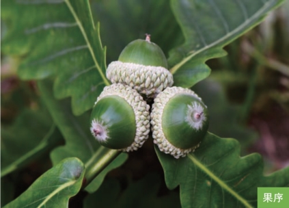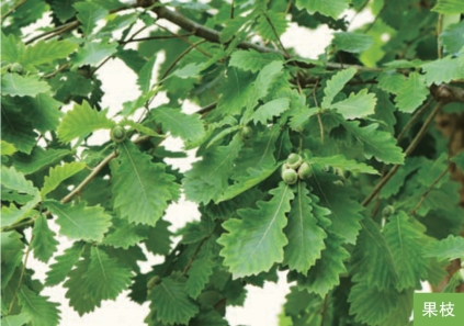 形态特征:落叶乔木,高达30米。树皮灰褐色,老时灰黑色,深纵裂。小枝紫褐色。叶互生;叶片倒卵形至长倒卵形,长7~20厘米,宽3~11厘米,顶端短钝尖或短突尖,基部窄圆形或耳形,叶缘具7~10对钝齿或粗齿。雄葇荑花序生于新枝下部,长5~7厘米;雌花序生于新枝上端叶腋,有花4~5朵。坚果长椭圆形,直径1.3~1.8厘米,高2~2.3厘米。壳斗杯形,包着坚果1/3~1/2,壳斗外壁小苞片呈半球形瘤状突起。花期4—6月,果期9—10月。