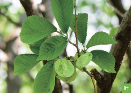 形态特征:落叶乔木或灌木,高达20米。树皮暗灰色或灰黑色,浅纵裂。小枝有时两侧具对生而扁平的木栓翅,幼枝有疏毛。叶互生;叶片宽倒卵形、倒卵状圆形或倒卵状长圆形,厚革质,大小变异很大,通常长5~10.5厘米,宽3~7厘米,两面粗糙,表面密被短硬毛,背面密被短糙毛。花在去年生枝上排成簇状聚伞花序或散生于新枝的基部。翅果宽倒卵状圆形或近圆形,长2.5~3.5厘米,宽2~3厘米,顶端凹或圆,两面及边缘有毛,果核部分位于翅果中部。花果期4—5月。