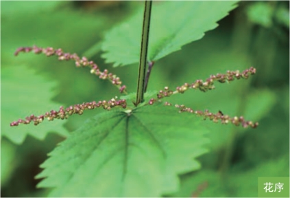 形态特征:多年生草本,高30~100厘米。茎纤细,具钝棱,疏生螫毛。叶交互对生;叶片卵形或宽卵形,长4~10厘米,宽2~6厘米,顶端短渐尖至尾状渐尖,基部圆形或宽楔形。花单性,雌、雄同株,稀异株;雄花序近穗状,生于上部叶腋;雌花序近穗状,生于下部叶腋,稀缩短成簇生状。瘦果熟时灰褐色,卵形,双凸透镜状,长近1毫米,多少有疣点。花期7—8月,果期8—9月。