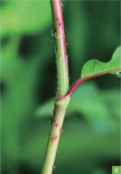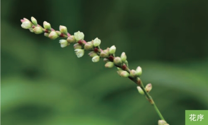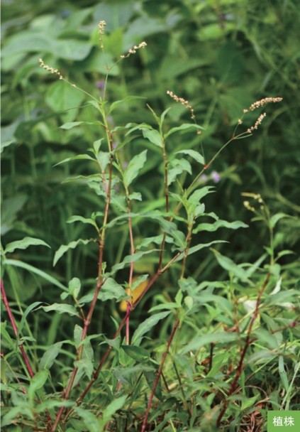 形态特征:一年生草本,高30~90厘米。茎直立或上升,被稀疏倒生短皮刺。叶互生;叶片披针形或狭椭圆形,长3~10厘米,宽1~3厘米,顶端通常急尖,基部楔形;托叶鞘筒状,膜质,具硬伏毛,顶端截形,具长缘毛。花序由几个总状花序状的花穗组成圆锥花序,花穗下部间断;苞片漏斗状,内具3~4朵花;花被5深裂,白色或淡红色。坚果黑色,扁圆形,双凸镜状,无光泽,长约3毫米,包于宿存的花被内。花果期8—9月。