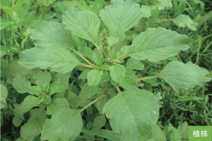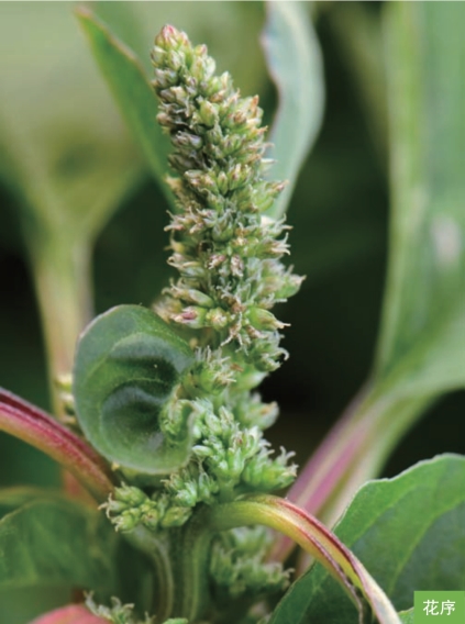 形态特征:一年生草本,高10~30厘米。茎伏卧而上升,淡绿色或紫红色。叶互生;叶片卵形或菱状卵形,长1.5~4.5厘米,宽1~3厘米,顶端凹缺,具1芒尖或微小不明显。花簇生于叶腋,生于茎端和枝端者成直立穗状花序或圆锥花序;花被片3枚,内曲。胞果扁圆形,长3毫米。种子黑色至黑褐色,环形,直径约12毫米,边缘具环状边。花期7—8月,果期8—9月。