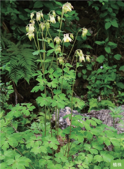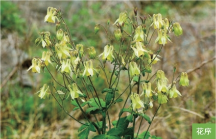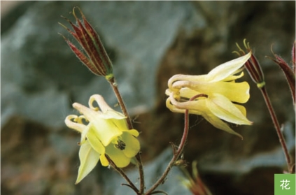 形态特征:黄花尖萼耧斗菜是尖萼耧斗菜的变型,与尖萼耧斗菜的区别是萼片及花瓣均为黄白色。其他形态特征同尖萼耧斗菜。