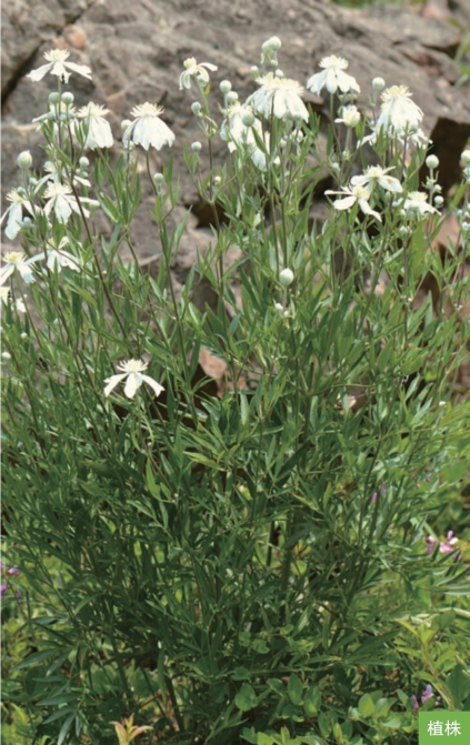 形态特征:多年生草本,高30~120厘米。茎直立。叶互生;叶片近革质,一至二回羽状深裂,裂片线状披针形、长圆状披针形或线形,长1.5~10厘米,宽0.1~2厘米。聚伞花序或为总状、圆锥状聚伞花序,顶生,稀单生;萼片4~8枚,通常6枚,白色,外面密生白棉毛,花蕾时似棉花球。瘦果倒卵形,扁平,密生柔毛,宿存花柱长1.5~3厘米,有灰白色长柔毛。花期6—8月,果期7—10月。