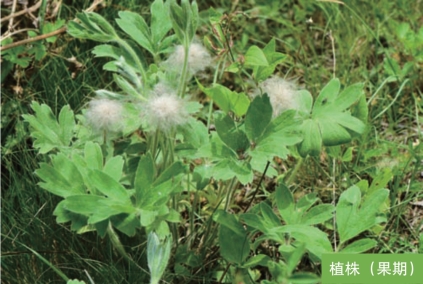 形态特征:多年生草本,高15~40厘米,全株密被白色长柔毛。叶基生;三出复叶,叶片宽卵形,长6~14厘米,宽8~16厘米,顶生小叶具柄,3深裂,侧生小叶无柄或近无柄,2~6深裂。苞片3枚,基部合生,3深裂;花钟形,向上开;萼片蓝紫色。聚合果近球形,直径9~12厘米;瘦果纺锤形,扁,长3~4毫米,有长柔毛,宿存花柱长4~6.5厘米,有向上斜展的长柔毛。花期4—5月,果期6—7月。