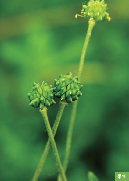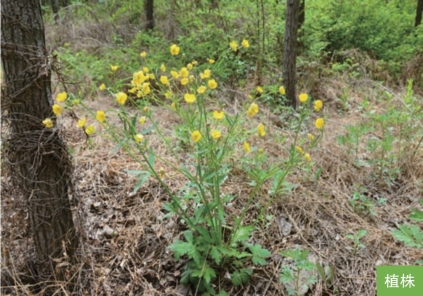 形态特征:多年生草本,高30~70厘米。茎直立,中空,被开展或贴伏的柔毛。基生叶多数,叶片近圆形或五角形,长和宽均为3~10厘米,通常3深裂,中裂片上部3浅裂,侧裂片不等2裂;茎下部叶与基生叶相似,叶片较小,叶裂片较狭,具尖齿;茎最上部叶线形,无柄。聚伞花序有多数花,疏散;萼片5枚,绿色;花瓣5枚,鲜黄色。聚合果近球形,直径6~8毫米;瘦果倒卵形,扁平,长2~3毫米,喙短,直或外弯。花期5—9月,果期6—9月。