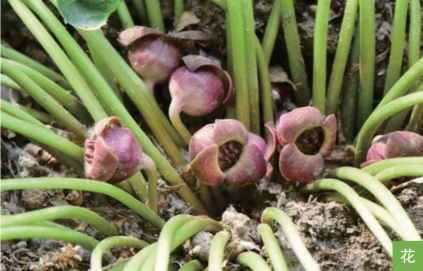 形态特征:多年生草本,高10~30厘米。根状茎短,稍斜升。根细长,具辛香气味。叶基生;叶片卵状心形或近肾形,长和宽均为4~13厘米,顶端急尖或钝,基部深心形,两侧圆耳状。花单生于叶腋;花被管壶状或半球状,外面紫棕色,稀紫绿色,喉部稍缢缩;花被裂片3枚,污红褐色,由基部向外反折。浆果状蒴果,肉质,半球状,长10~15毫米,直径15~20毫米。种子灰褐色,卵状圆锥形,长约3毫米。花期5月,果期6—8月。