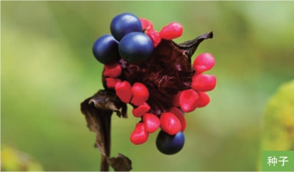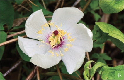 形态特征:多年生草本,高30~70厘米。根粗壮,褐色。叶互生;茎下部叶为二回三出复叶,上部叶为三出复叶或单叶;顶生小叶倒卵形或椭圆形,长6~15厘米,宽3~10厘米;侧生小叶比顶生小叶小,同形。单花顶生;萼片3~5枚,淡绿色;花瓣6枚,白色、红色、紫红色。蓇葖果卵圆形或长圆形,长2~4厘米,成熟时果皮反卷呈红色。种子蓝黑色,近球形,直径约5毫米。花期5—6月,果期8—9月。