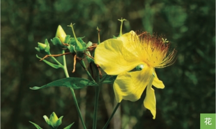 形态特征:多年生草本,高0.5~1.3米。茎直立,具4纵线棱。单叶对生;无柄;叶片长圆状卵形至长圆状披针形,长4~10厘米,宽1~3厘米,顶端渐尖或钝,基部楔形或心形而抱茎,背面散布黑色腺点。单花或数朵花形成聚伞花序,顶生或腋生;萼片5枚;花瓣5枚,黄色,各瓣偏斜而旋转;雄蕊极多数,5束;花柱5,与子房略等长或稍长。蒴果棕褐色,圆锥形或卵球形,长1~2厘米,成熟后顶端5裂。种子棕色,圆柱形,微弯,长1~1.5毫米,有明显的龙骨状突起或狭翅和细的蜂窝纹。花期7—8月,果期8—9月。