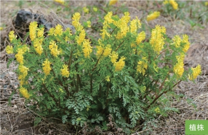 形态特征:二年生草本,高20~60厘米。茎一至多条,发自基生叶叶腋。基生叶多数,莲座状,花期枯萎;茎生叶互生,下部叶具柄,上部叶近无柄,二至三回羽状全裂。总状花序顶生和腋生;花黄色至淡黄色;上花瓣的冠檐大,显著长于下花瓣,距短粗,末端膨大,稍下弯,外花瓣顶端勺状,内花瓣具鸡冠状突起。蒴果线形,念珠状,长2~4厘米,宽约2毫米。种子黑亮,扁球形,直径约2毫米,表面密被圆锥状突起。花期4—6月,果期5—7月。